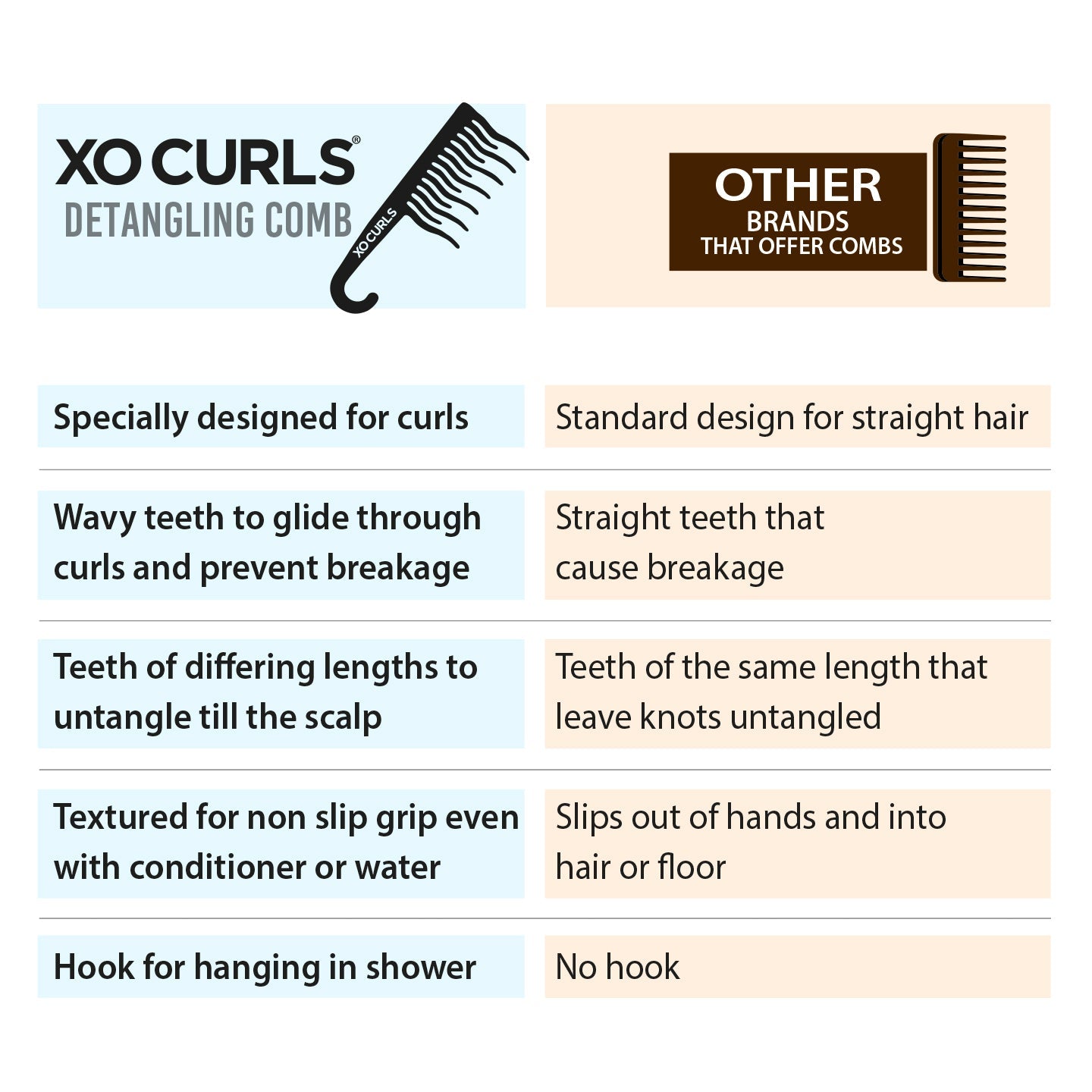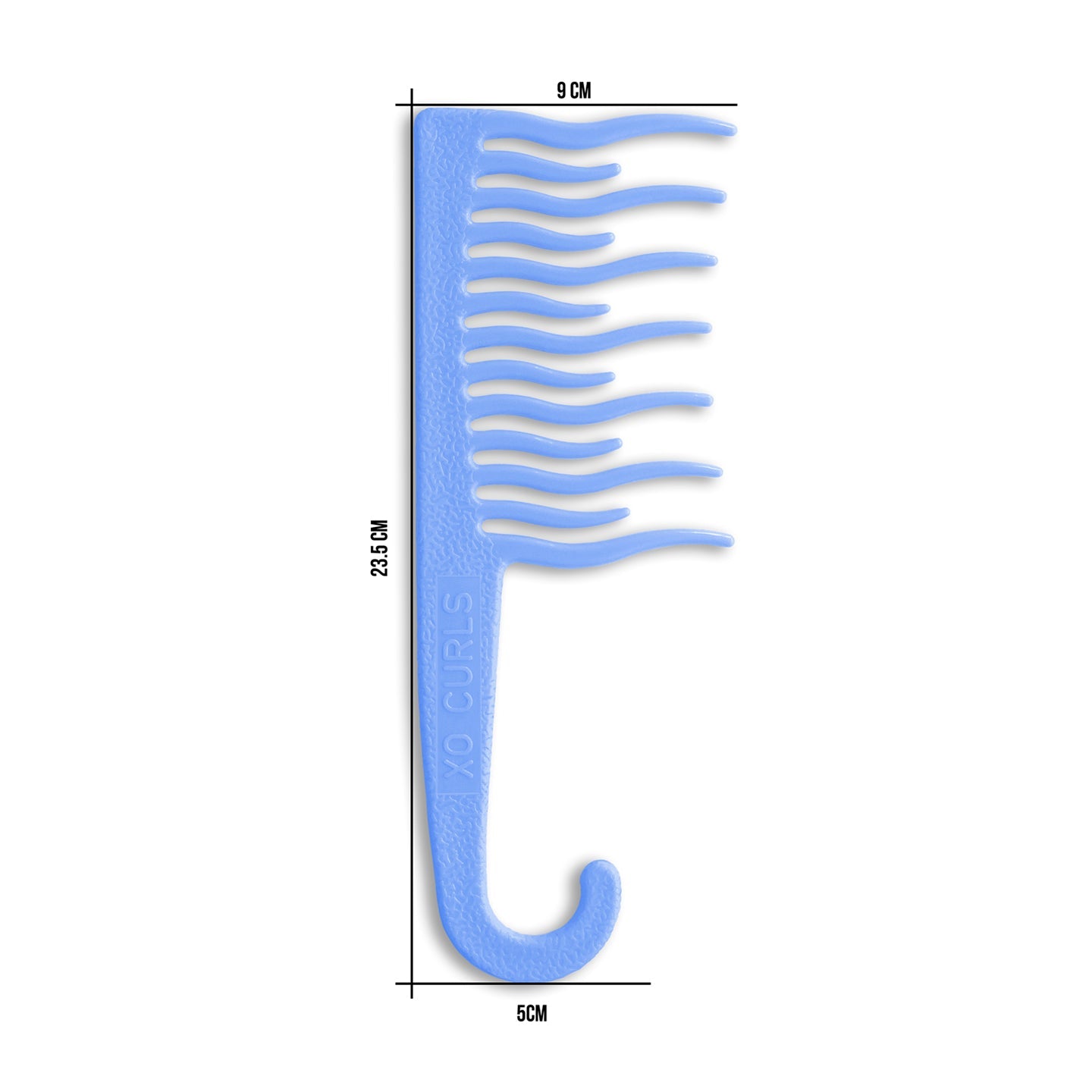 The XO Curls Shower Detangling Comb is designed to gently remove knots and tangles, featuring wave-shaped teeth that glide through hair with minimal breakage. Suitable for wavy hair, the comb comes in various colors and includes a convenient hook for easy bathroom storage.
