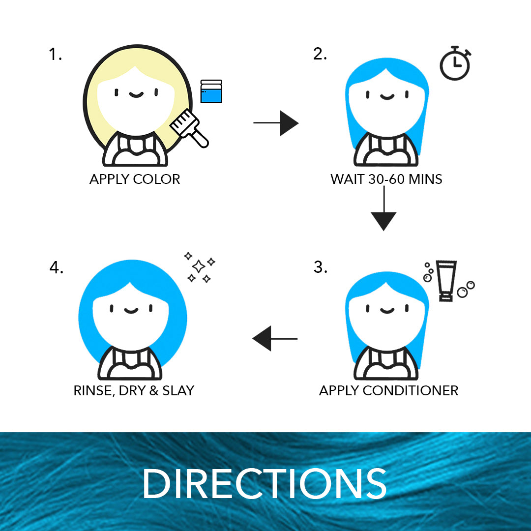 This stunning aqua hair tint gives the most vivid results on hair pre-lightened to a level 9. Toning your hair before use is highly recommended to avoid any deeper green undertones. This color also gives a green tint to brown shades of bleached hair.